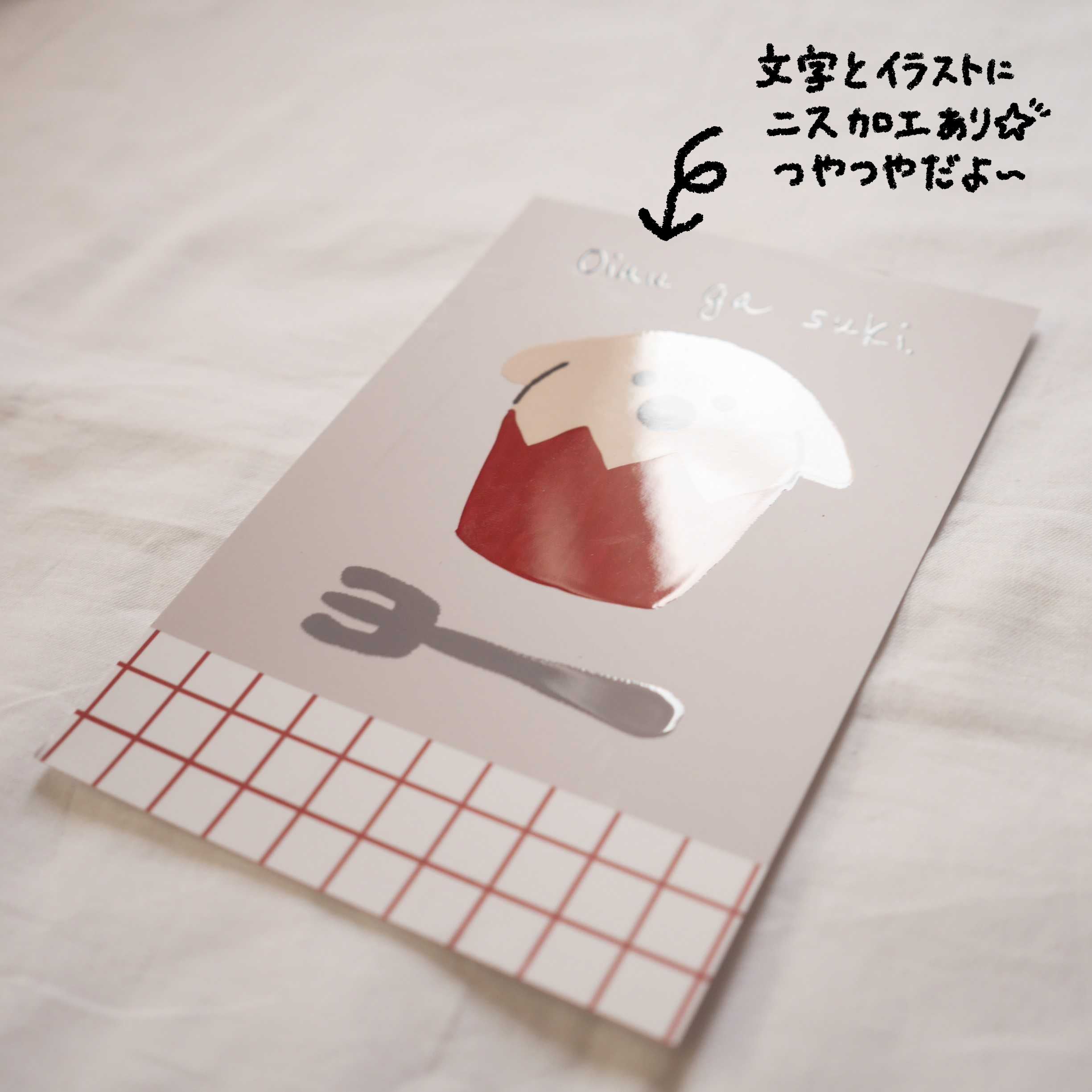 文字とカップケーキの部分はニス箔の加工があり、つやつやになっております。