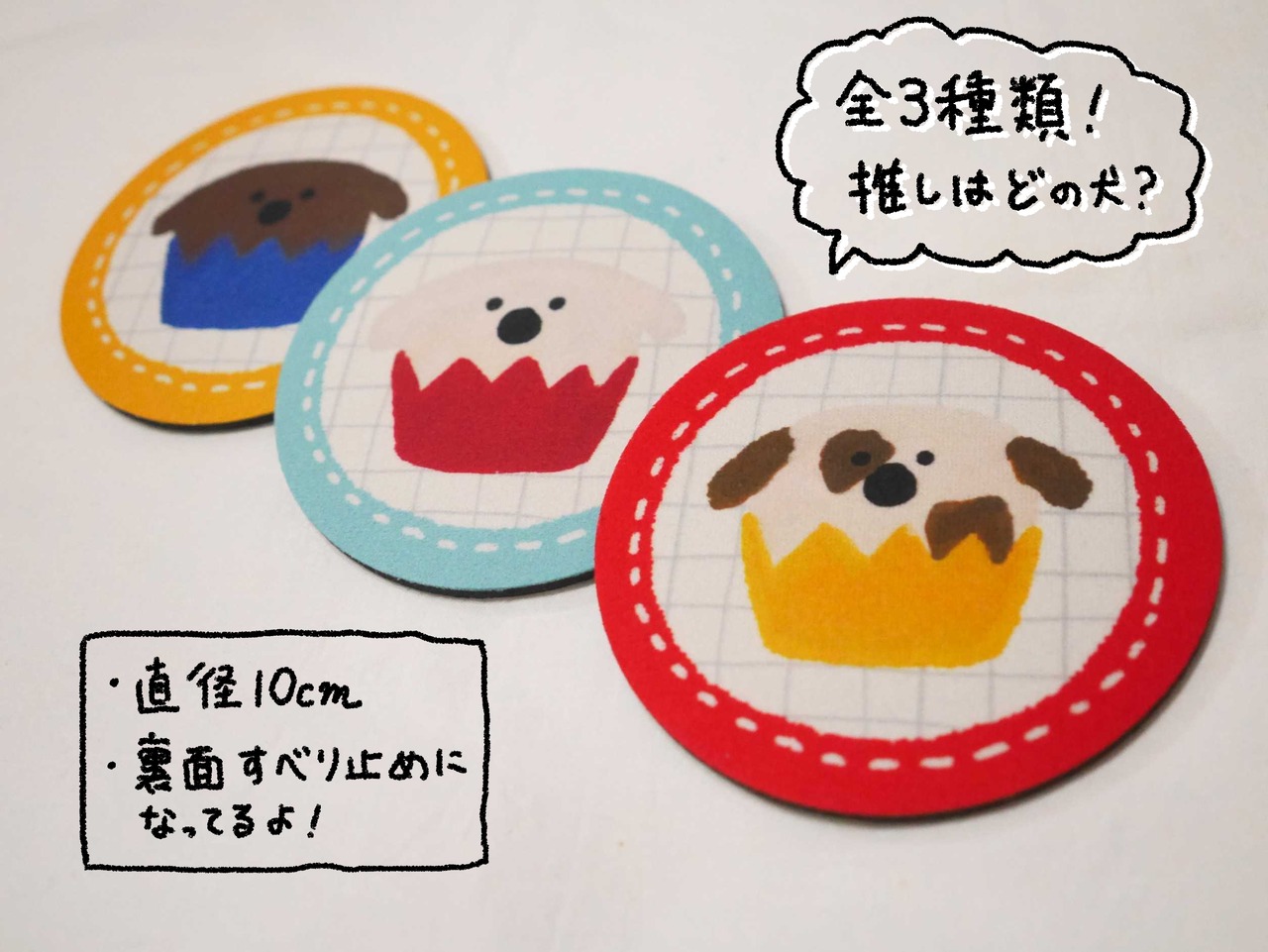布製のコースターです。 裏面は滑り止めになっています。