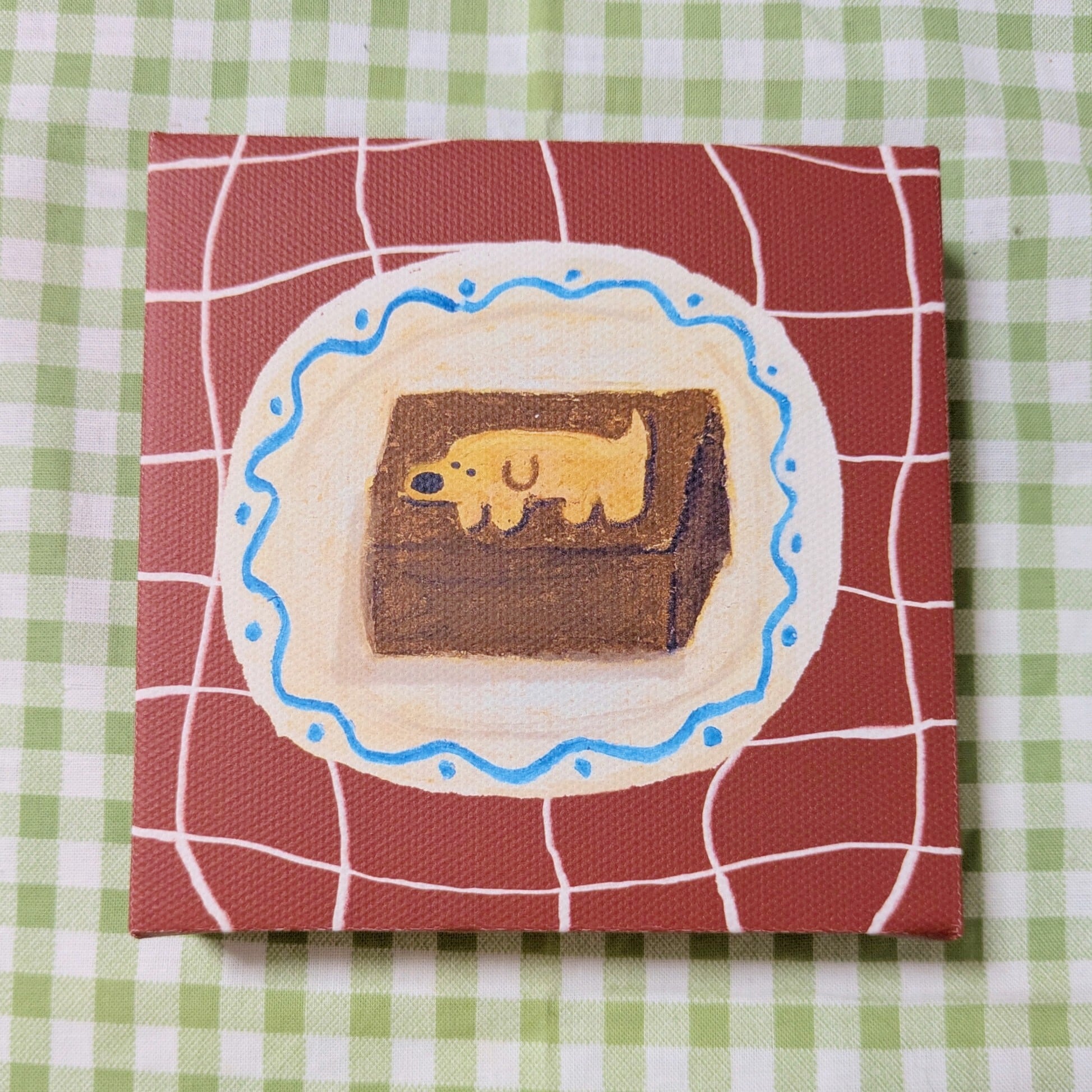 いぬのビスケットを乗せたガトーショコラ ― 複製キャンバスアート